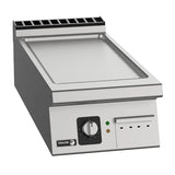 Powerful and reliable, the FT-E905 L Fagor 900 Series countertop smooth plate electric griddle provides the perfect cooking surface for busy professional kitchens. Providing an impressive 7.25kW of power across its 400mm wide, 20mm thick mild steel smooth cooking plate, you get a fast heat-up and rapid recovery times - essential for those busy lunch or dinner hours.